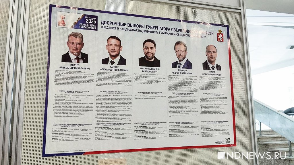 Стали известны первые предварительные итоги голосования на досрочных выборах губернатора Свердловской области. По данным ЦИК РФ, после обработки 8,8% бюллетеней голоса распределились следующим образом: