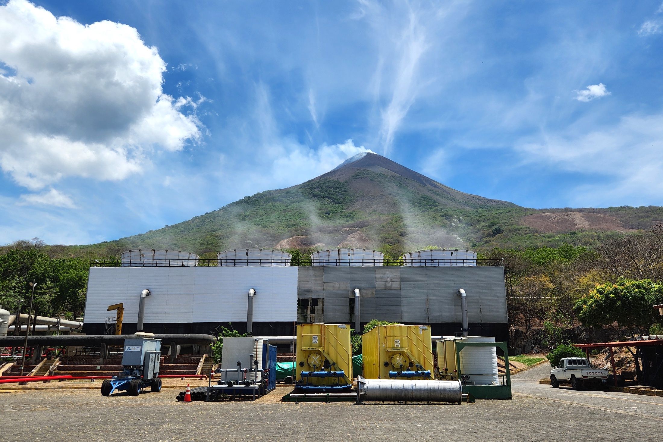 Она была построена на территории природного заповедника в 40 километрах от Манагуа. Отведенную под нее площадь, словно артерии, переплетают трубопроводы, которые соединяют геотермальные скважины со зданием ГеоТЭС.